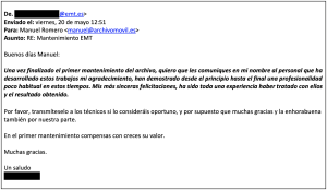 Cada seis meses mi equipo se desplaza con sus pócimas secretas y con sus herramientas a tu Archivo a dejártelo EN CONDICIONES.